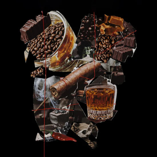 La fragranza si apre con un accordo intenso di whisky, caramello e caffè, come un bicchiere fumante in una stanza semibuia. Il cuore rivela un velluto gourmand scuro, con sfumature di cioccolato fondente che evocano una dolcezza proibita. A seguire, note di tabacco e peperoncino aggiungono una tensione sensuale, prima che la cenere e il fumo disegnino l’ombra decadente del personaggio.