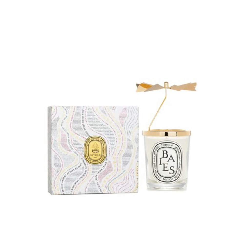 • Un raffinato incontro tra poesia olfattiva e magia luminosa. Il cofanetto Carrousel et Bougie Baies di Diptyque unisce la celebre candela “Baies”, amatissima per il suo profumo fresco e vibrante di ribes nero e rosa di Bulgaria, a un carrousel dorato che prende vita con il calore della fiamma.