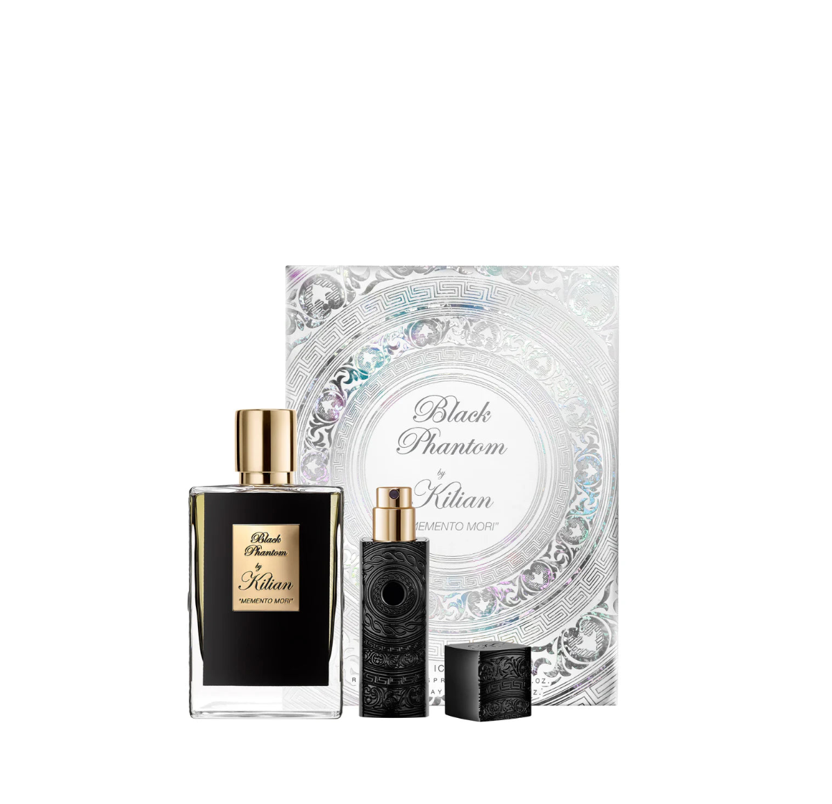 Let yourself be won over by the iconic Black Phantom - "Memento Mori" set, a 50ml refillable perfume bottle paired with an elegant 7.5ml Talisman travel spray, both filled with the same irresistible fragrance.