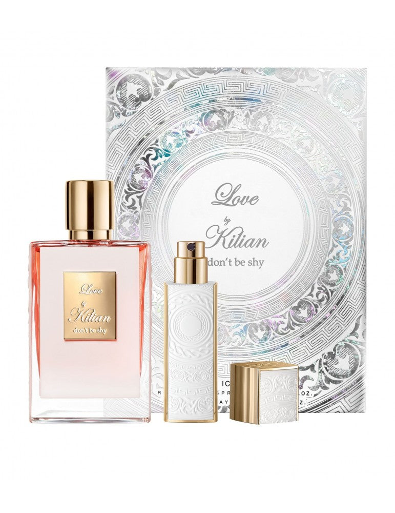 Let yourself be won over by the "Love, don't be shy" icon set, a 50ml refillable perfume bottle paired with an elegant 7.5ml Talisman travel spray, both filled with the same irresistible fragrance.